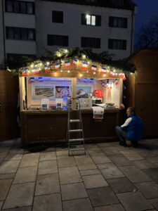 Auch dieses Jahr betreiben wir vom Verein wieder einen Stand auf dem Starnberger Weihnachtsmarkt. Gestern haben wir den Stand weihnachtlich und französisch geschmückt und heute sind wir bereit, Sie zu empfangen und sie mit ausgewählt weihnachtlich französischen-bretonischen Köstlichkeiten zu verwöhnen. Sie können bei uns wählen zwischen frisch aus der Bretagne importierten Austern oder einer herrlichen heißen französischen Fischsuppe mit Croutons. Wem der Sinn eher nach Süßem steht, für den halten wir warme Kouign Amann(bretonischer Butterkuchen) bereit. Dazu bieten wir ein prickelndes Glas Champagner oder einen schönen französischen Weißwein an. Wenn Sie sich aufwärmen wollen, können wir Ihnen auch weißen Glühwein oder Glüh-Cidre anbieten. Unser Stand befindet sich direkt an der Wittelsbacherstraße/ Ecke Kirchplatzweg. Kommen Sie zu uns und genießen Sie das leicht französisch angehauchte Vorweihnachtsgefühl. Wir freuen uns auf Sie.