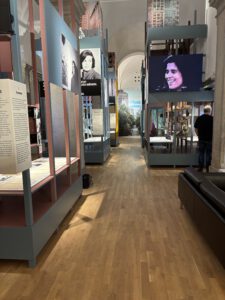 Mit viel Begeisterung führte uns unsere junge Führerin dann ab 20:00 Uhr durch die kleine aber feine Ausstellung, die ganz viele Aspekte des Lebens der Ausnahme-Intelektuellen Susan Sontag thematisiert. Schon mit 17 Jahren heiratet sie und versucht so dem kleinbürgerlichen Milieu in Tuscon Arizona zu entfliehen. Die Begegnung mit Thomas Mann hinterlässt sie tief enttäuscht, das amerikanische akademische Milieu wird ihr ebenfalls schnell zu eng. Sie geht nach Paris um an der Sorbonne zu studieren.